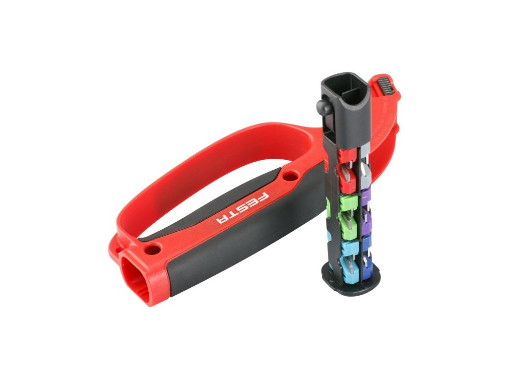 praktický zásobník na brusné nástavce - integrovaný v rukojeti