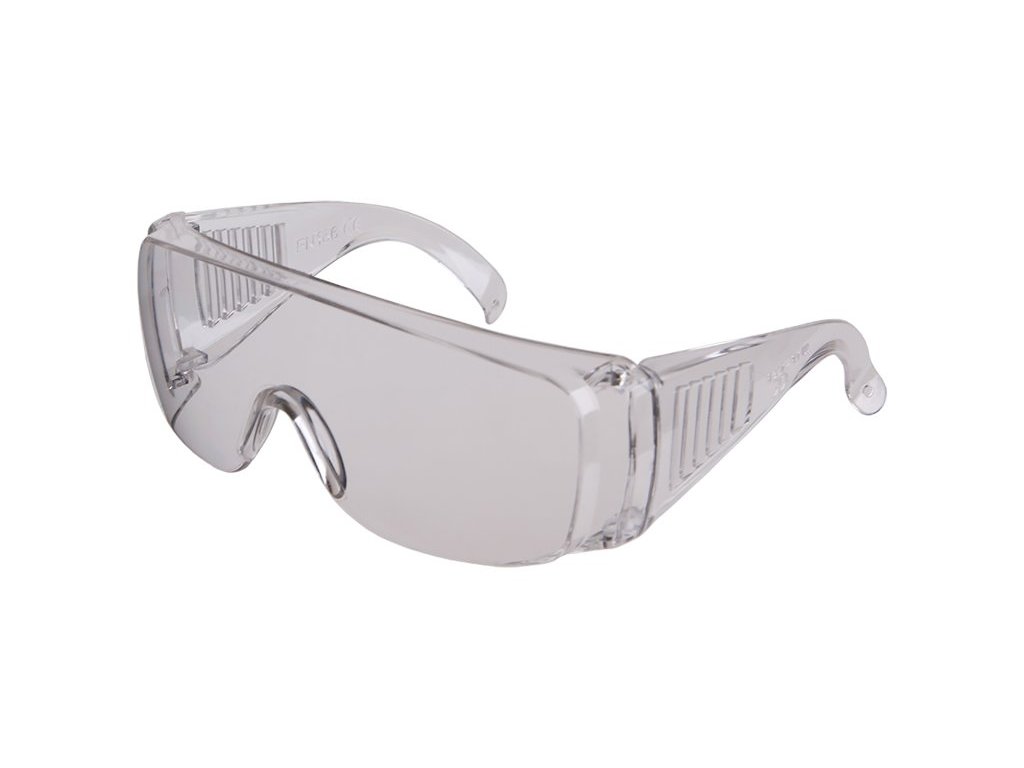 Čiré ochranné brýle s polykarbonátovým zorníkem a straničky, CE EN 166.