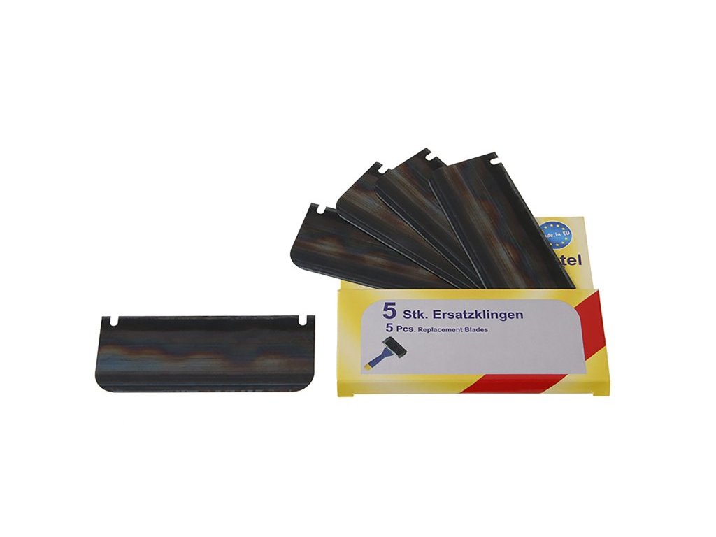 5 ks náhradních břitů do špachtle RAVA. Jedná se o 5 ks náhradních nerezových ohebných břitů používaných do špachtlý RAVA.