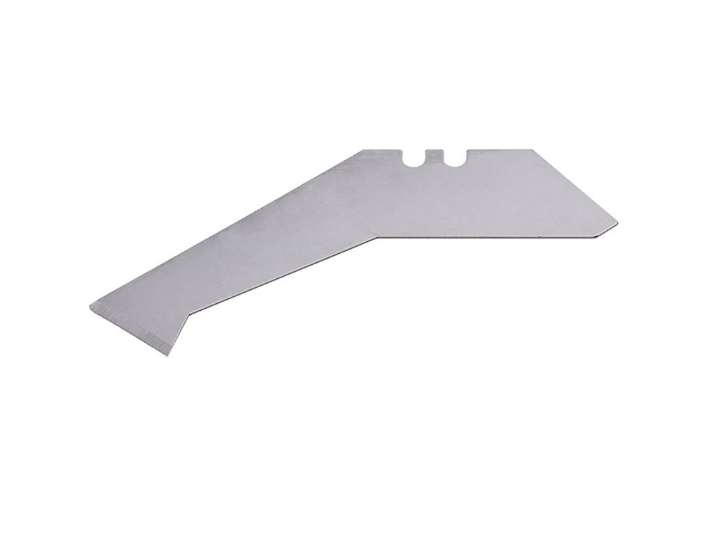 Náhradní zahnutá čepel určená zejména pro podlahové a střešní krytiny, univerzální úchyt pro výsuvné i odlamovací nože 18mm, 5 ks v balení.