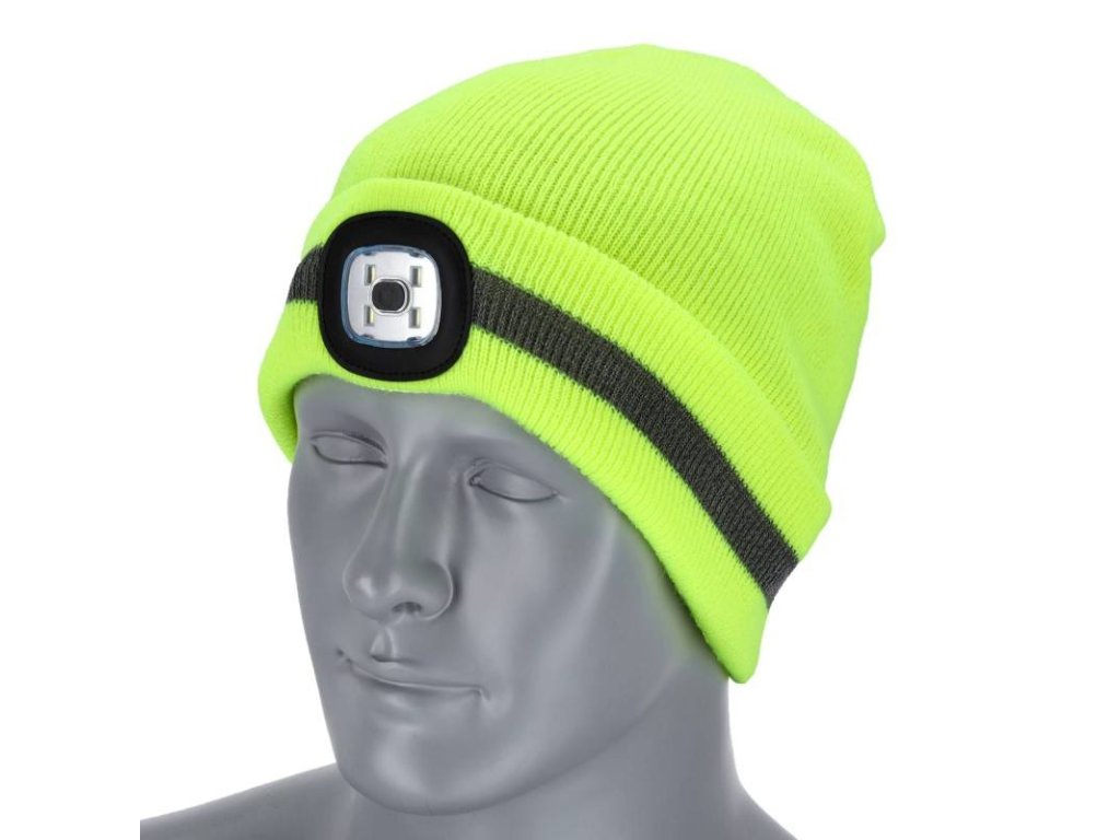 Čepice zimní RAYFLUO s LED světlem, žlutá, 54-60, STALCO