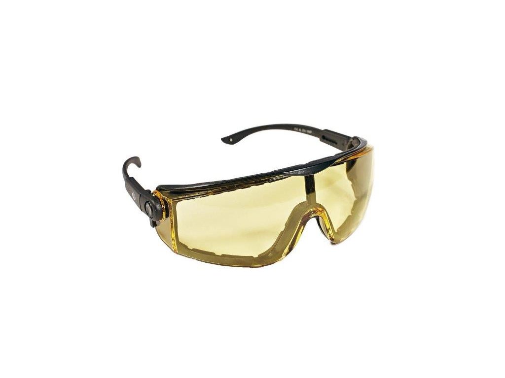 Brýle s polykarbonátovým zorníkem třídy 1F dle EN 166. Možnost vložení dioptrický skel do vkládacích rámečků. Díky tvaru a měkkým vnitřním polštářkům skvěle přiléhají na obličej. Zorník s ochranou proti poškrábání a proti zamlžení. Ochrana proti letícím částicím s nízkou energií. Nastavitelná délka a úhel stranic. Brýle je možné nosit s dioptrickými skly i bez nich.