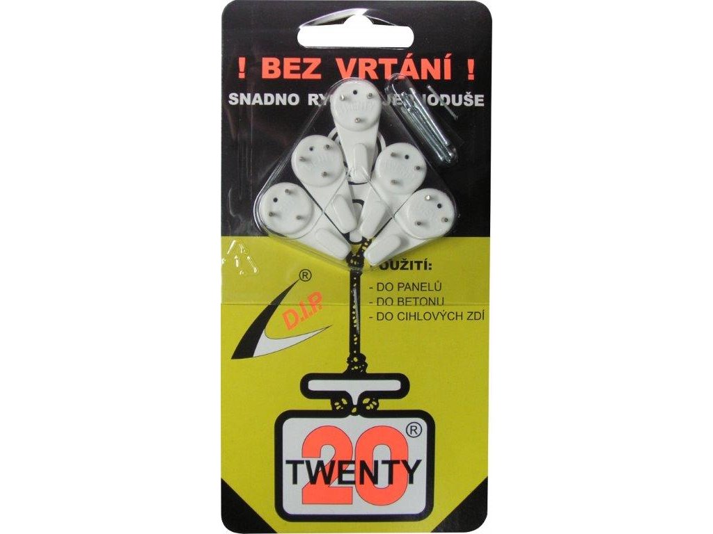Háčky TWENTY UNIVERSAL jsou vyrobeny z vysoce kvalitní plastické hmoty Polyamid ( Nylon ), která vyniká maximální pevností a odolností. Rovněž použité hroty, ze speciální kalené oceli, jsou povrchově antikorozně upraveny a umožňují aplikaci háčků i v krajně nepříznivých podmínkách. Originální tvar háčků, jehož návrh z roku 1991 je chráněn průmyslovým vzorem 23631, umožňuje všestranné uplatnění