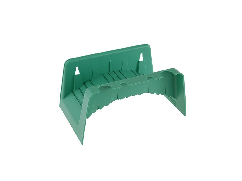 Držák zahradní hadice, možnost upevnění na stěnu, odkládací prostory na koncovky, stříkací pistole a jiné.