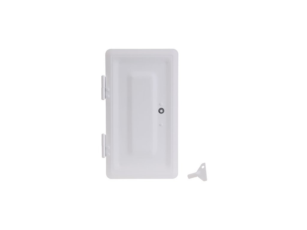 rozměr krycích dvířek 200 x 355 mm rozměr rámu pro instalaci 160 x 320 mm dvířka z kvalitního silného profilovaného plechu komínová dvířka mají vnirřní a vnější dvířka se zajištěním zámkem - klíč součástí balení opatřeno kvaltní bílou práškovou barvou