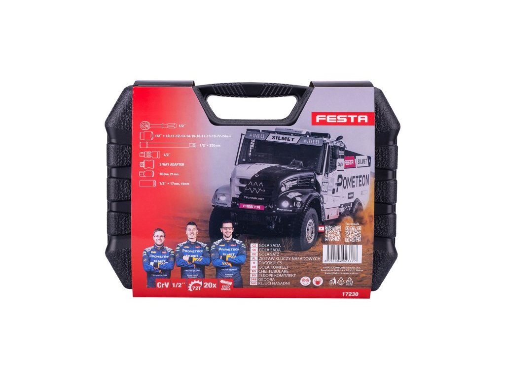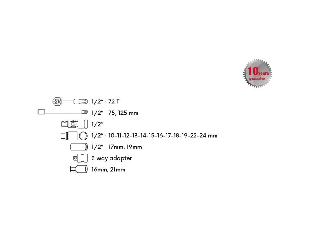 Kvalitní gola sada je vhodná díky kvalitě použitých materiálů a zpracování v profesionální autodílně nebo servisu. 10 let záruka. Všechny části jsou vyrobeny z vysoce kvalitní chrom-vanadiové oceli. Niklová povrchová úprava. Hroty bitů jsou ze slitiny oceli S2. Ráčny mají jemné dělení 72 zubů, tělo ráčny z CrV oceli, zubový mechanismus z S2 oceli, ergonomicky tvarovanou rukojeť se zdravotně nezávadnou gumou. Nový design plastového kufru z primárního materiálu s kovovými uzávěry a panty víka.