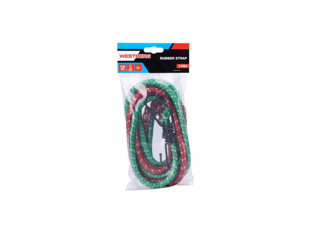 Elastické gumové popruhy, opletené polyesterem a zakončené oboustranně háky z ocelových poplastovaných drátů k uchycování zavazadel.