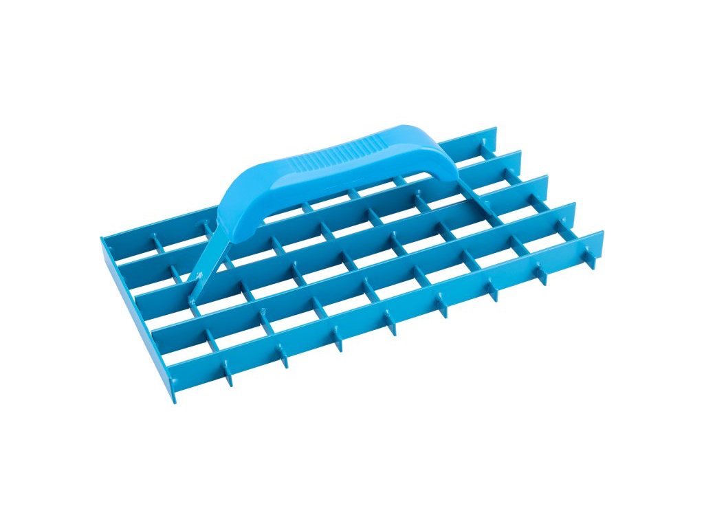 Škrabák mřížový 280x150 mm na omítky má poplastovanou rukojeť. Materiál -