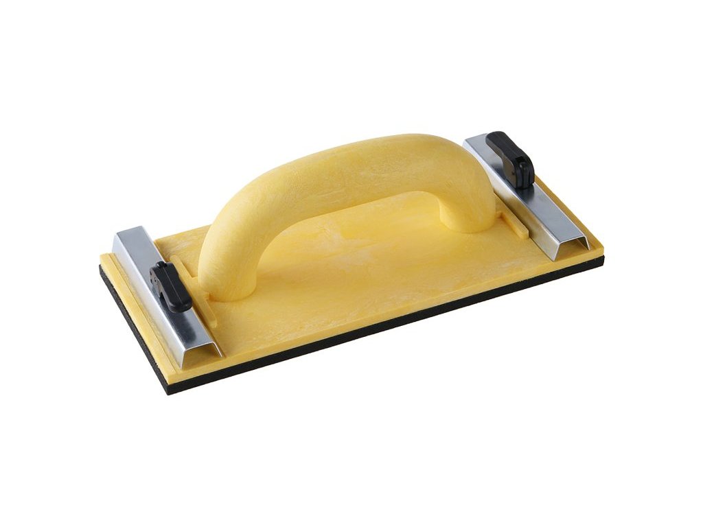 Hladítko na brusnou mřížku, vrstva z měkké gumy zajišťuje dobrou přizpůsobivost k broušené ploše, výměnný mechanizmus umožňuje rychlou a snadnou výměnu zanesené brusné mřížky za novou, rozměr : 230 x 105 mm, použítí : pro uchycení brusné mřížky na sádrokartony při broušení, uchacená smirkového papíru - plátna