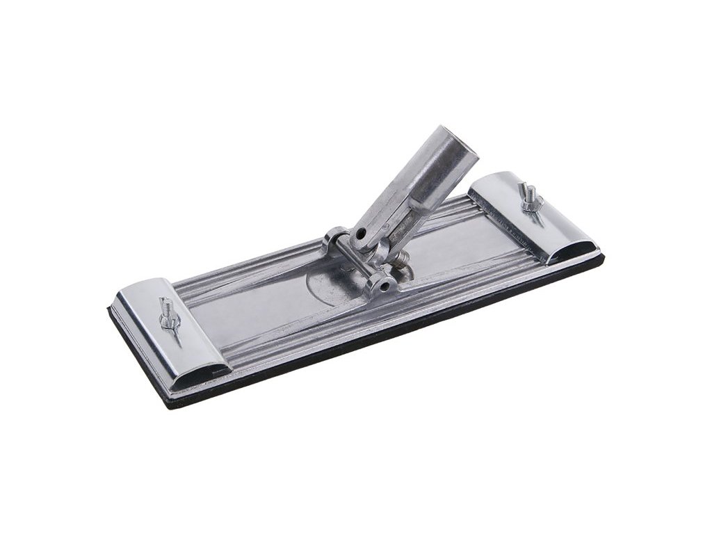 Hladítko hliníkové na násadu pro brusnou mřížku 230 x 80 mm. Tělo je vyrobeno z tlakově litého vyztuženého hliníku a je pevně připojeno k podložce z pěnové pryže. Rychle fungující kladné svorky drží brusný papír pevně na místě. Používá se k broušení sádrokartonových spár a spojů.