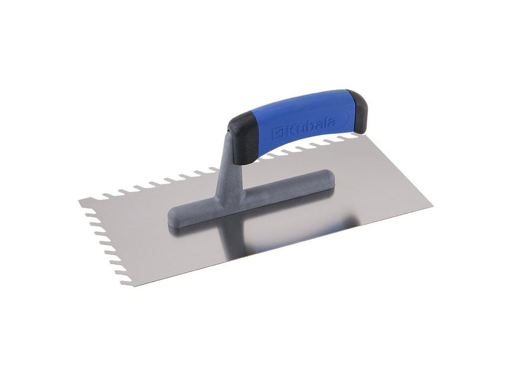 Ocel nerezová, kyselině odolná, toušťka: 0,7mm, dvousložková rukojeť (G-1), na podlahy, nanášení omítek, lepidel a štuků, zaoblené rohy, broušená, leštěná, na štukatérské práce.