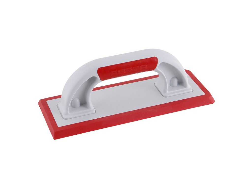 Spárovací hladítko 240 x 95 mm s plastovou rukojetí a s tuhou pryžovou podložkou speciálně navrženou pro nanášení spárovací malty. Okraje jsou zkosené.