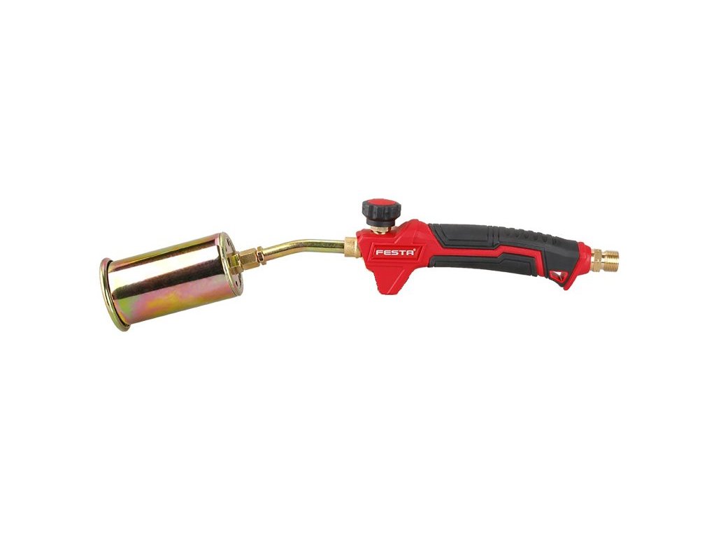 hořák FESTA na propan-butan (LPG) maximální výkon 12 kW ergonomická neklouzavá rukojeť, plynulá regulace průtoku průměr koncovky 35mm, délka 350mm vhodné hadice 3 m - 69910 napojení přes ventil/regulátor - 69923, 69920 nebo 69907