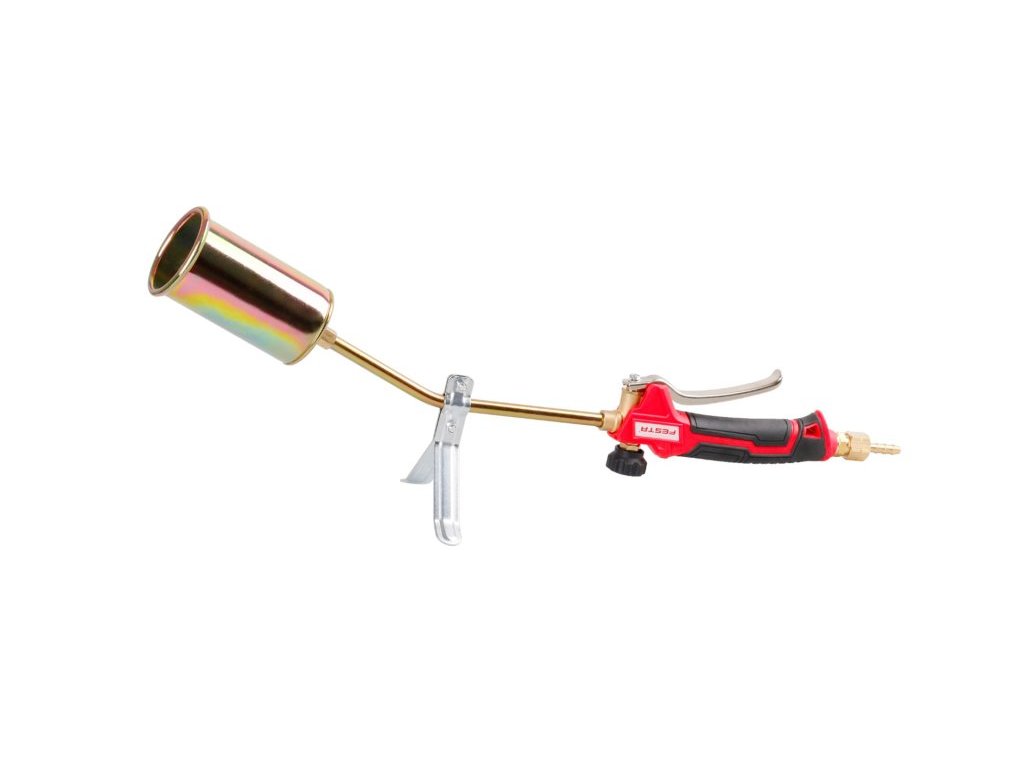 hořák FESTA na propan-butan (LPG) 55 x 350 mm, maximální výkon 35 kW ergonomická neklouzavá rukojeť, regulace průtoku, spoušť s hladkým chodem a přesným ovládáním výkonu součástí také opěra pro bezpečné, přechodné odložení hořícího hořáku zakončení - trn nebo závit, vhodné hadice 3 m - 69910, 5 m - 69911, 10 m - 69912 napojení přes regulátory 69923, 69920, 69907 na lahve 5, 10, 33 kg