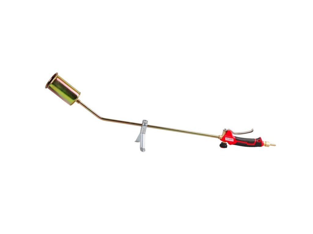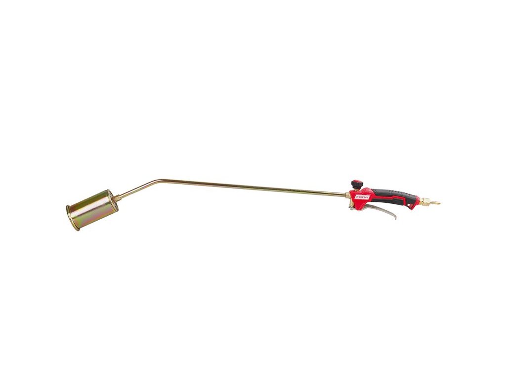 hořák FESTA na propan-butan (LPG) 55 x 850 mm, maximální výkon 35 kW ergonomická neklouzavá rukojeť, regulace průtoku, spoušť s hladkým chodem a přesným ovládáním výkonu součástí také opěra pro bezpečné, přechodné odložení hořícího hořáku zakončení - trn nebo závit, vhodné hadice 3 m - 69910, 5 m - 69911, 10 m - 69912 napojení přes regulátory 69923, 69920, 69907 na lahve 5, 10, 33 kg