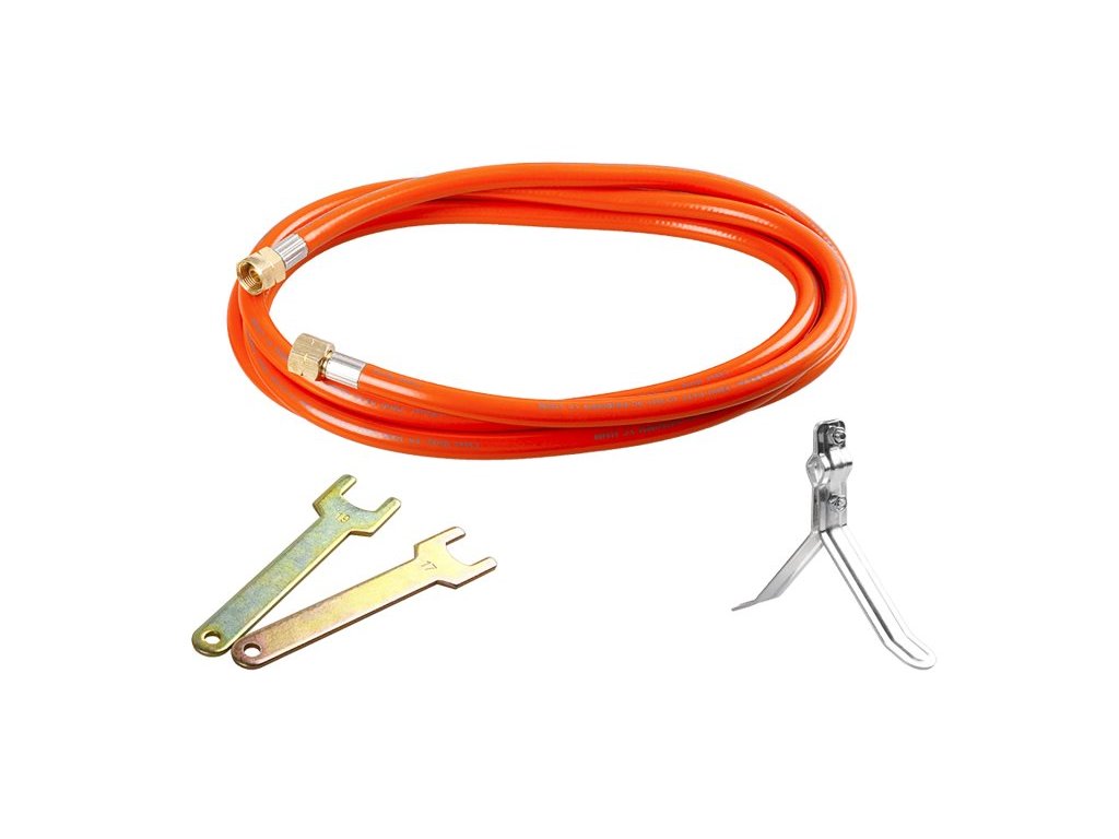 hořák FESTA na propan-butan (LPG), sada s hadicí 3 m hadice s certifikací 55 x 850 mm, maximální výkon 35 kW ergonomická neklouzavá rukojeť, regulace průtoku, spoušť s hladkým chodem a přesným ovládáním výkonu součástí také opěra pro bezpečné, přechodné odložení hořícího hořáku zakončení - trn nebo závit, vhodné hadice 5 m - 69911, 10 m - 69912 napojení přes regulátory 69923, 69920, 69907 na lahve 5, 10, 33 kg