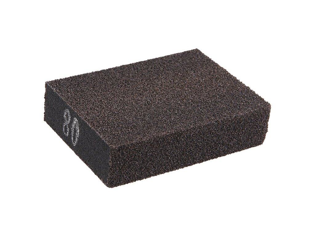 Brusná houba, podklad : vysoce elastická houba, zrnitost: 80, druh zrna: karbid křemíku, pojivo : pryskyřice, použití : mezibroušení laků, broušení barev, plniv a starých laků, broušení dřeva, kovu, plastu, broušení nátěrů v drážkách a na ploše, broušení sádrokartonu,..., rozměry : uvedeny v názvu výrobku, balení : papírový návlek s eurootvorem.