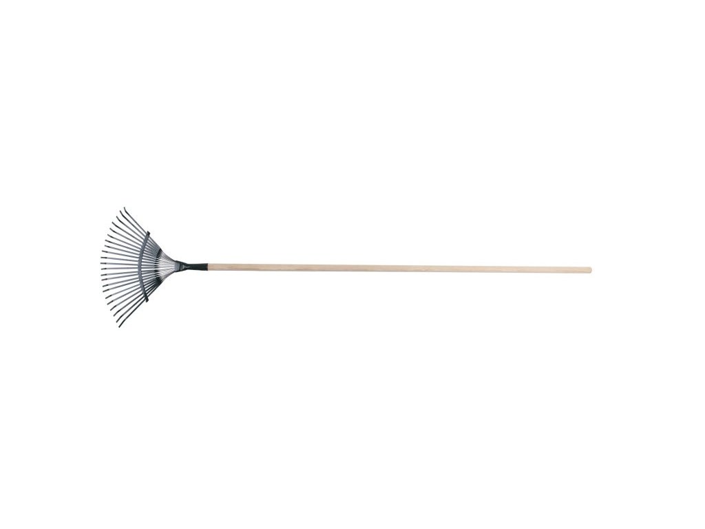 Zahradní hrábě - lamelové (kovové), šířka 45 cm, počet lamel 22, použití : k hrabání listí, trávy. S dřevěnou násadou 160 cm.
