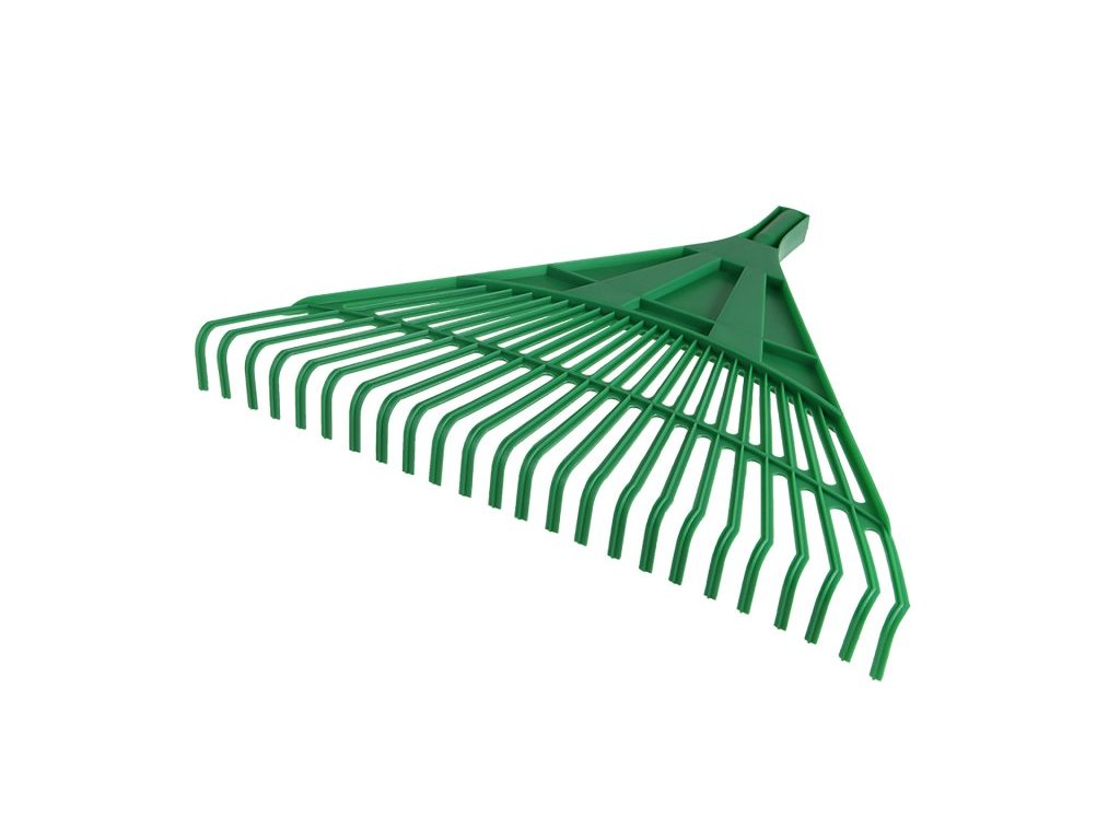 Plastové hrábě pro hrabání listí, trávy nebo také plsti po vertikutaci, 24 plastových zubů (lamel), pracovní záběr 60cm.