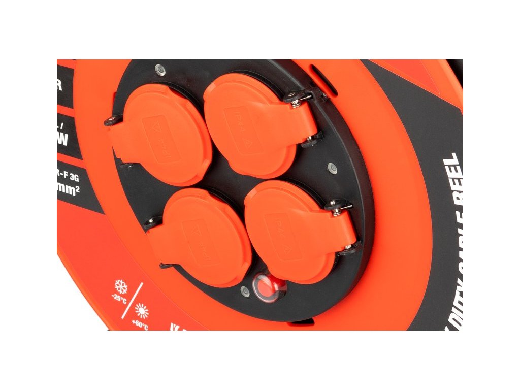 prodlužovací kabel na bubnu se 4mi zásuvkami 3 x 1,5 mm na 230 V, pro venkovní použití