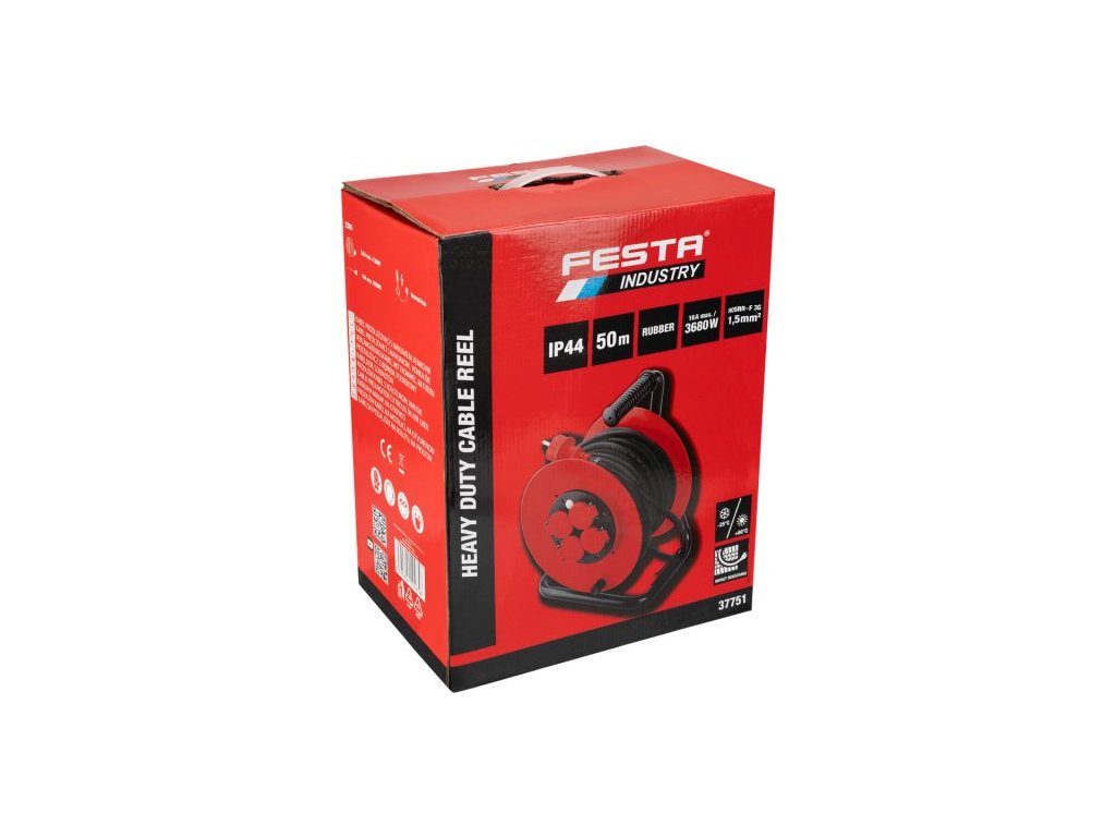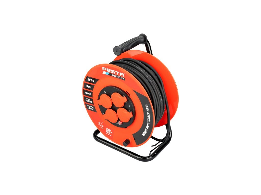 Kabel prodlužovací na bubnu venkovní FESTA INDUSTRY 3x1.5mm 50m 230V max 3680W 4 zásuvky guma IP44