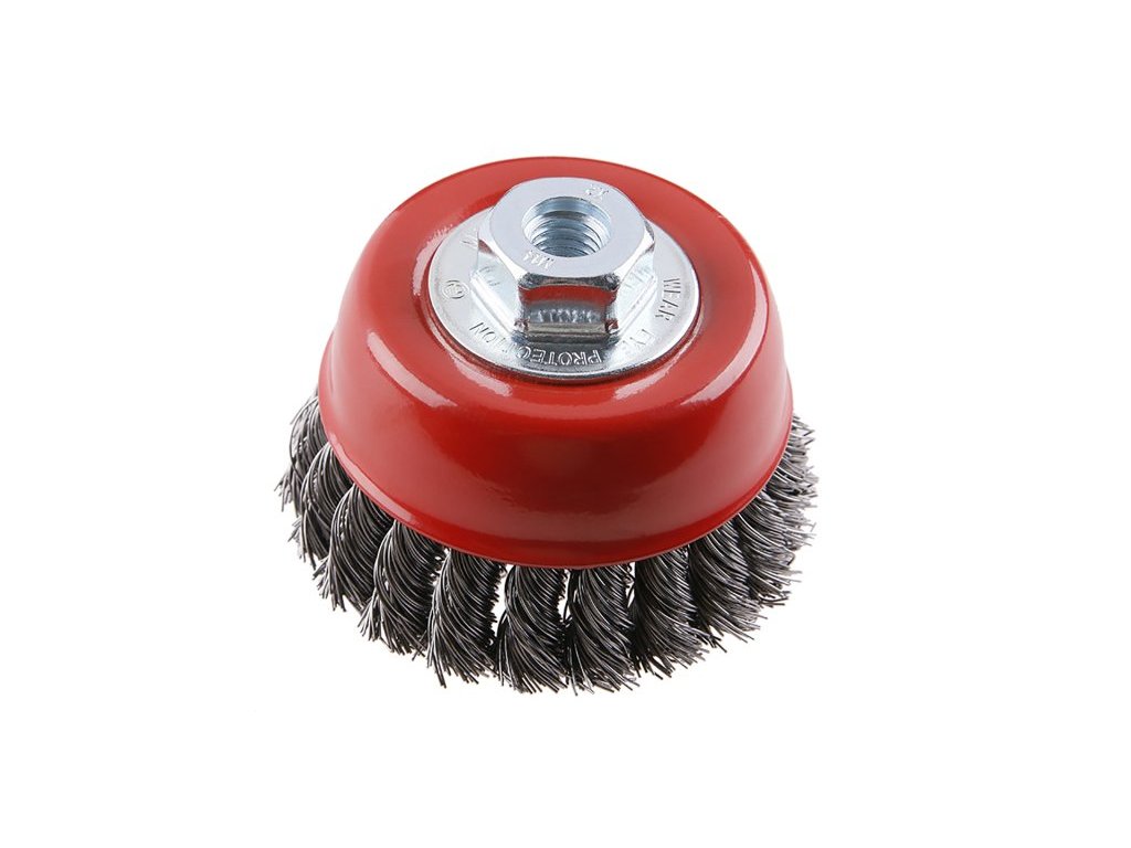 Rotační kartáč - hrnkový, provedení : COPY - patentovaný drát 0,5 mm = copy se ani při extrémním zatížení nerozplétají, kartáče FESTA zaručují kvalitní použité materiály i zpracování, průměr 100mm, uchycení M14*2mm, počet drátů 1632, délka drátů 22 mm, maximální otáčky za min. 8500, vhodný pro zámečnické a kovoobráběcí práce, odstraňování rzi, barev, čištění svárů…, balení : papírový box s eurootvorem. Instruktážní video