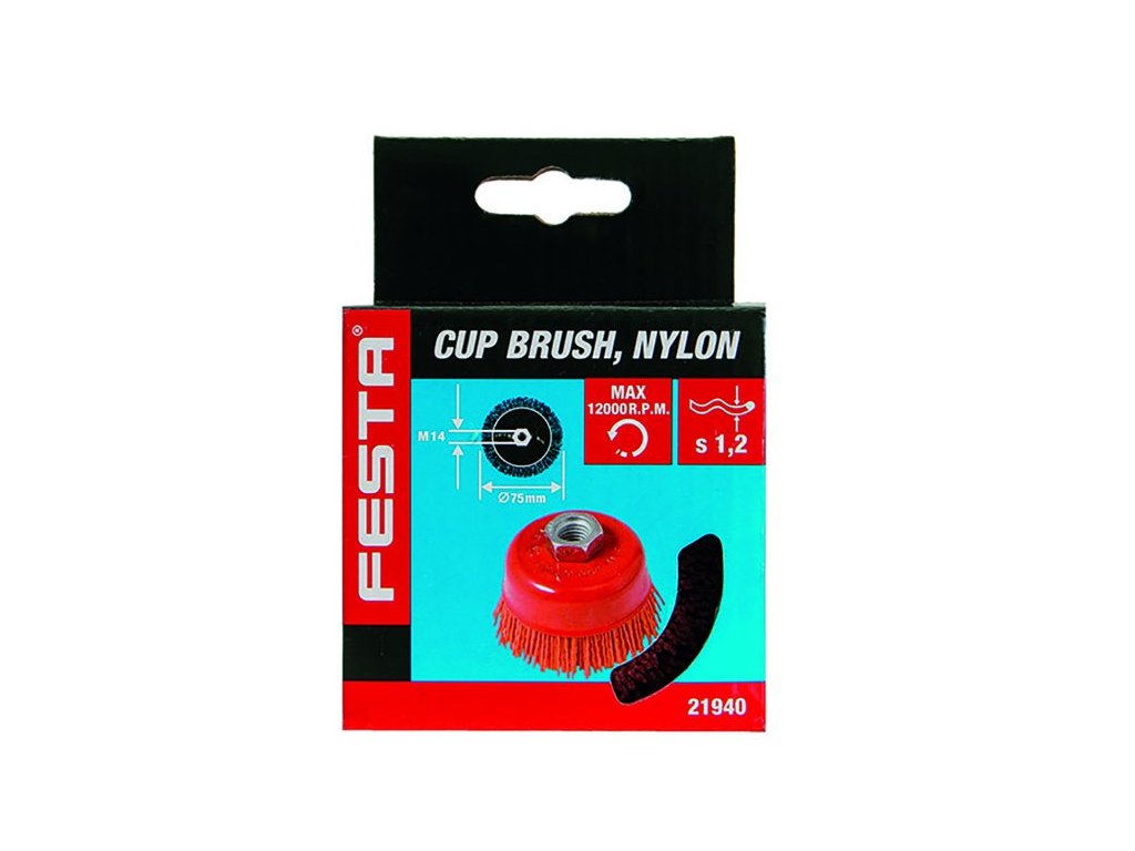 Kartáč hrnkový s nylonovými vlnitými vlákny, uchycení M14, miskový, vhodné na odstranění barev, leštění i opracování dřeva... Instruktážní video