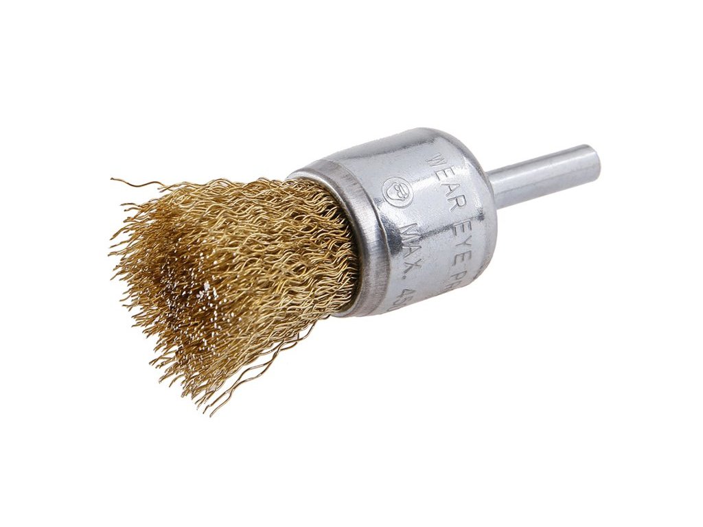 Rotační kartáč - vlnitý, kartáče FESTA zaručují kvalitní použité materiály i zpracování, drát 0,3 mm - pomosazený průměr 25mm, stopka 6 x 20 mm, pozinkované tělo kartáče, počet drátů: 150, délka drátu : 20 mm, max. přípustné otáčky : 4500 1/min, použití : lehké brousící práce a čištěnína na hůře přístupných místech, balení : blistr s eurootvorem.