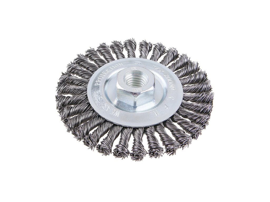 Rotační kartáč - radiální, provedení : COPY - patentovaný drát 0,5 mm - copy, se ani při extrémním zatížení nerozplétají, kartáče FESTA zaručují kvalitní použité materiály i zpracování, průměr 100 mm Závit M14x2mm Pozinkované tělo kartáče Počet drátů: 1584, Délka drátu : 27mm Max. přípustné otáčky: 10000 1/min Použití: odstranění barvy, rzi, otřepů, zbytků po svařovení, strusky, zdrsňování, čištění kovových Instruktážní video