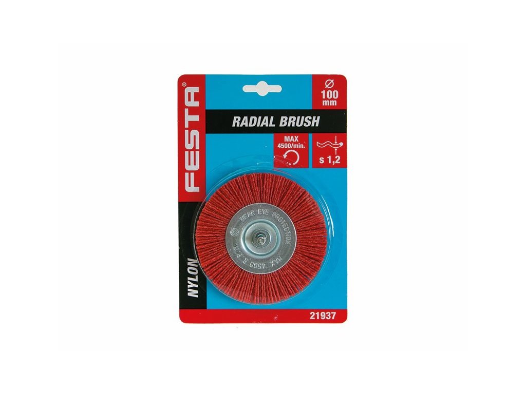 Kartáč okružní s nylonovými vlnitými vlákny, uchycení stopka 8mm, miskový, vhodné na odstranění barev, leštění, opracování dřeva...