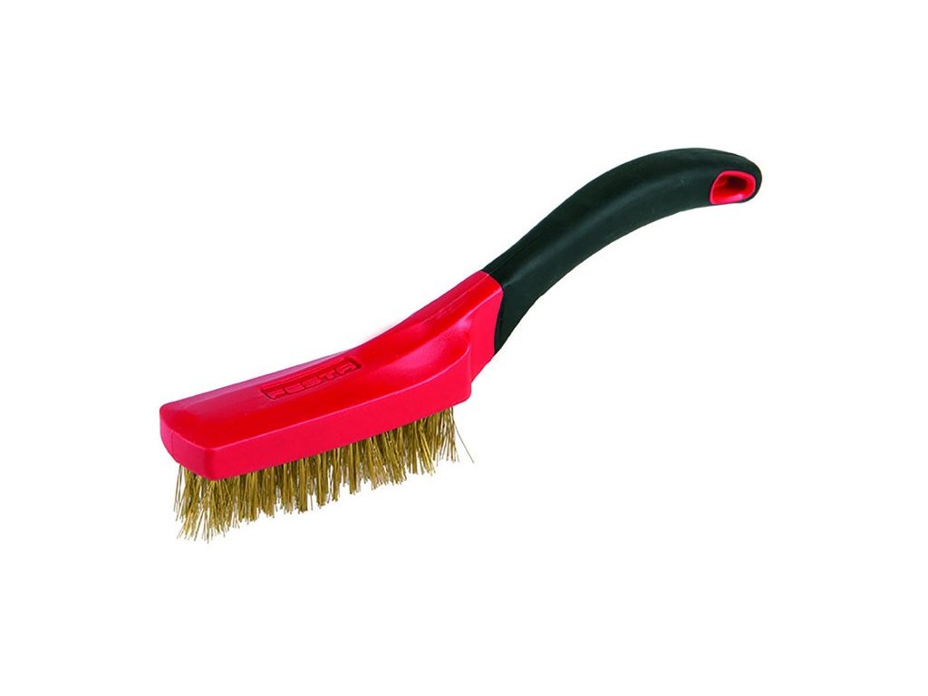 Ruční mosazný kartáč, základ konstrukce kartáče tvoří kvalitní polypropylen, rukojeť je potažena TPR gumou, která zabraňuje klouzání i v případě mastných rukou. Kvalitní uchycení drátkových svazků v tomto případě v pěti řadách. Otvor v rukojeti pro zavěšení. Použití pro čištění dílů, součástek a komponentů, vhodné na nerez. Lze použít pro čištění grilovacích roštů.