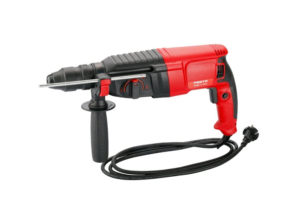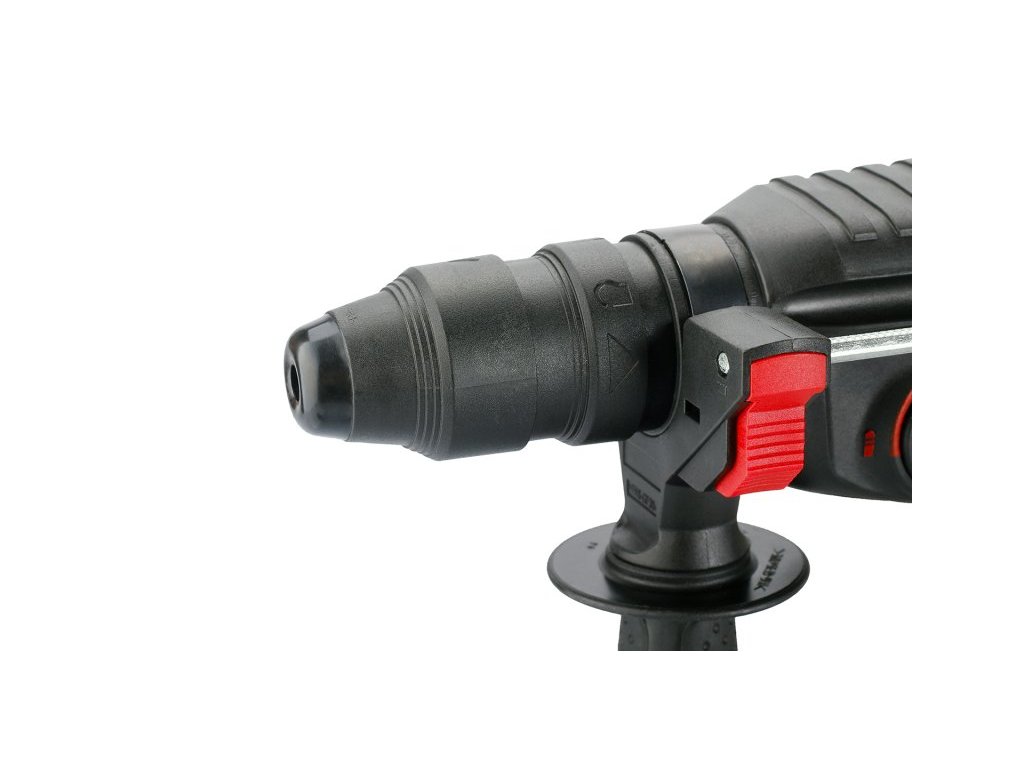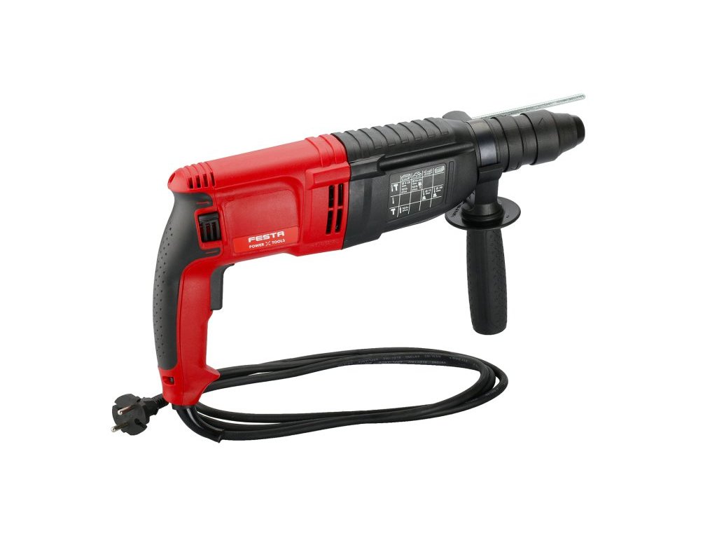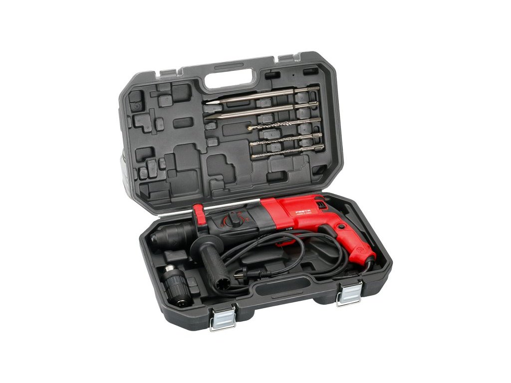 kladivo je dodáváno v praktickém kufru včetně příslušenství - vrtáky SDS+ 6. 8, 10 x 160 mm, sekáče SDS+ plochý 20 x 250 mm a špičák 250 mm, rychlovyměnitelné sklíčidlo na vrtáky s válcovou stopkou 2 - 13 mm, hloubkový doraz, náhradní uhlíky (samostatně objednatelné pod číslem 28223)