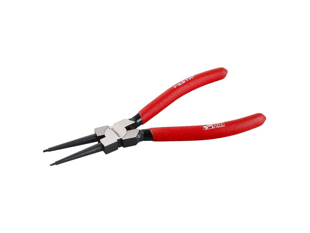 Kleště na vnitřní pojistné kroužky - kroužky nasazujeme do otvorů a pomocí kleští stiskneme vnitřní kroužek k sobě. Tím zmenšíme jeho průměr a můžeme kroužek pohodlně namontovat nebo demontovat