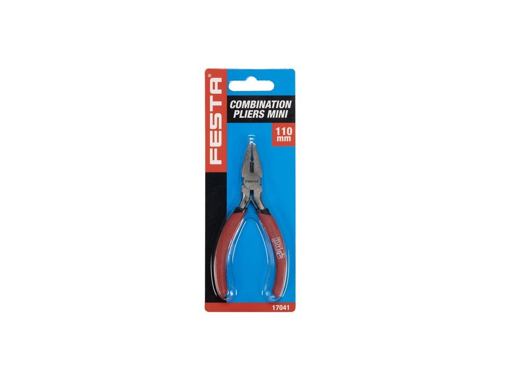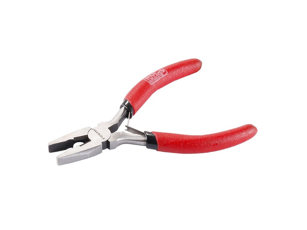 Kombinované kleště FESTA v provedení MINI (110mm), pogumované rukojeti, rozevírací pérko, pro jemnou mechaniku.