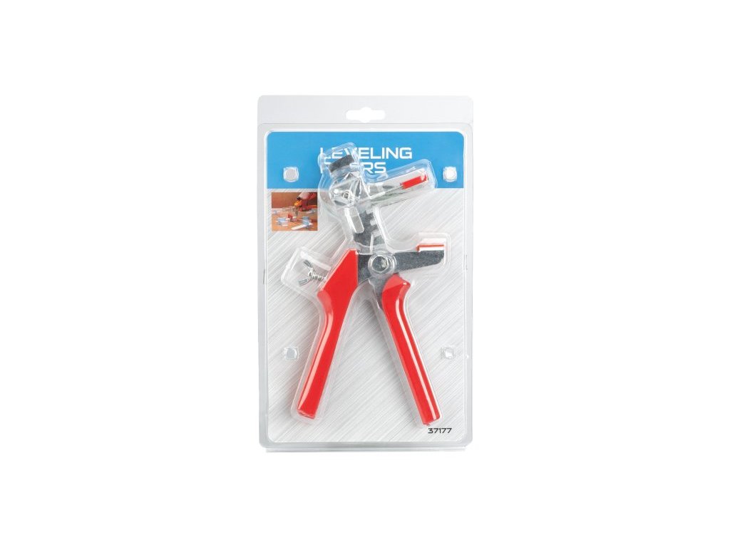 aplikační kleště pro nivelační systémy aplikace klínů pomocí kleští odstraní případný výškový rozdíl mezi pokládanými dlaždicemi ve spáře, po zaschnutí se horní část spony s klínem odstraní - bílou gumovou palicí nebo ukopnutím nivelační systém obsahuje - distanční spony různých tlouštěk a nivelační klíny (opakovaně použitelné) šířka spony udává šířku spáry
