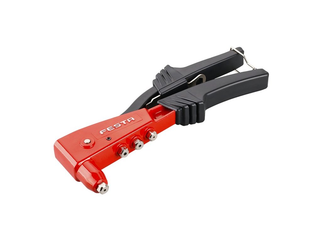 nýtovací kleště FESTA - Cr-Mo čelisti pro trhací nýty průměru 2,4 - 3,2 - 4,0 - 4,8 mm matriály nýtů hliník, ocel. nerez, měď robustní ocelový rám, plastové rukojeti, klíč pro snadnou výměnu koncovek jednotlivých průměrů váha: 830g Instruktážní video