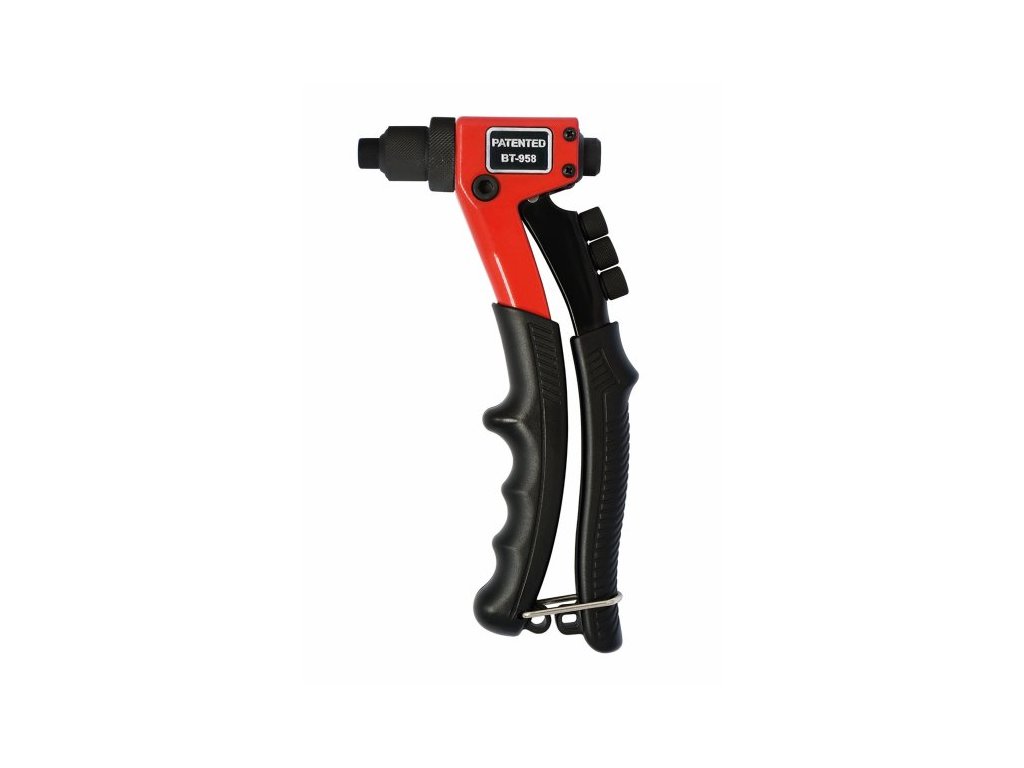 profesionální nýtovací kleště FESTA pro průmyslovou výrobu - Cr-Mo čelisti pro trhací nýty průměru 2,4 - 3,2 - 4,0 - 4,8 mm matriály nýtů hliník, ocel, nerez, měď robustní ocelový rám, ergonomické rukojeti tvarované pro efektivní a snadnou práci snadná výměna požadovaného průměru nýtu - bez klíče, jednotlivé průměry barevně odlišeny Instruktážní video