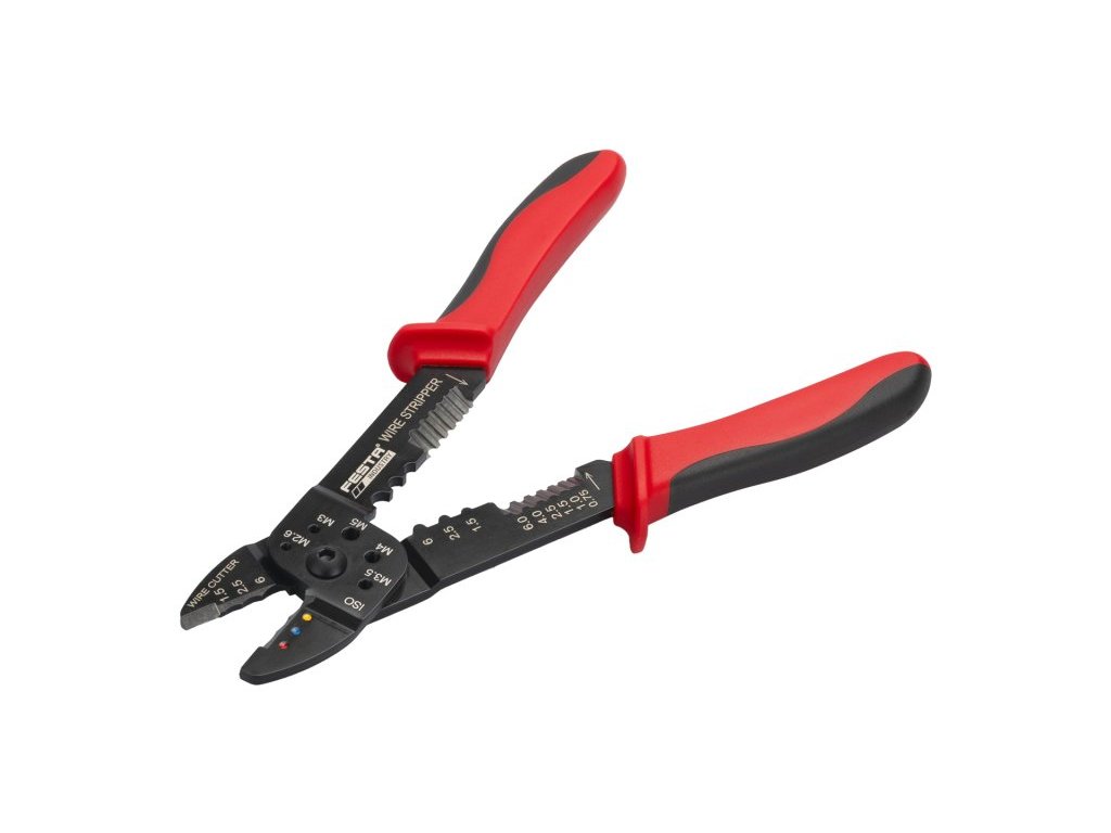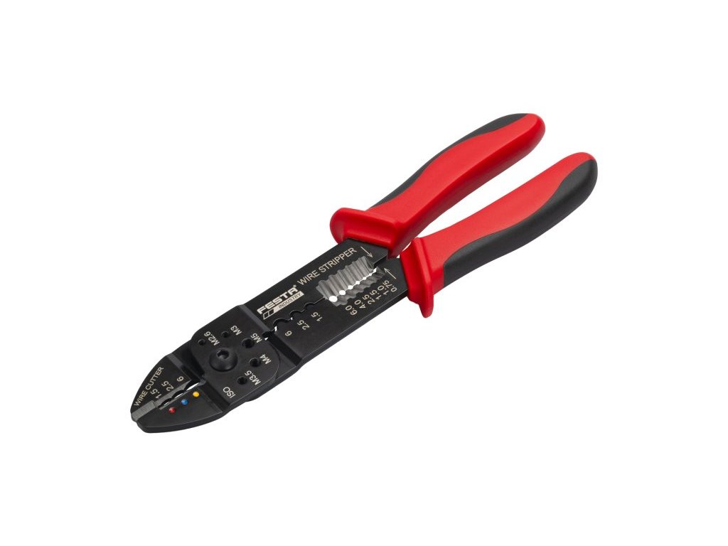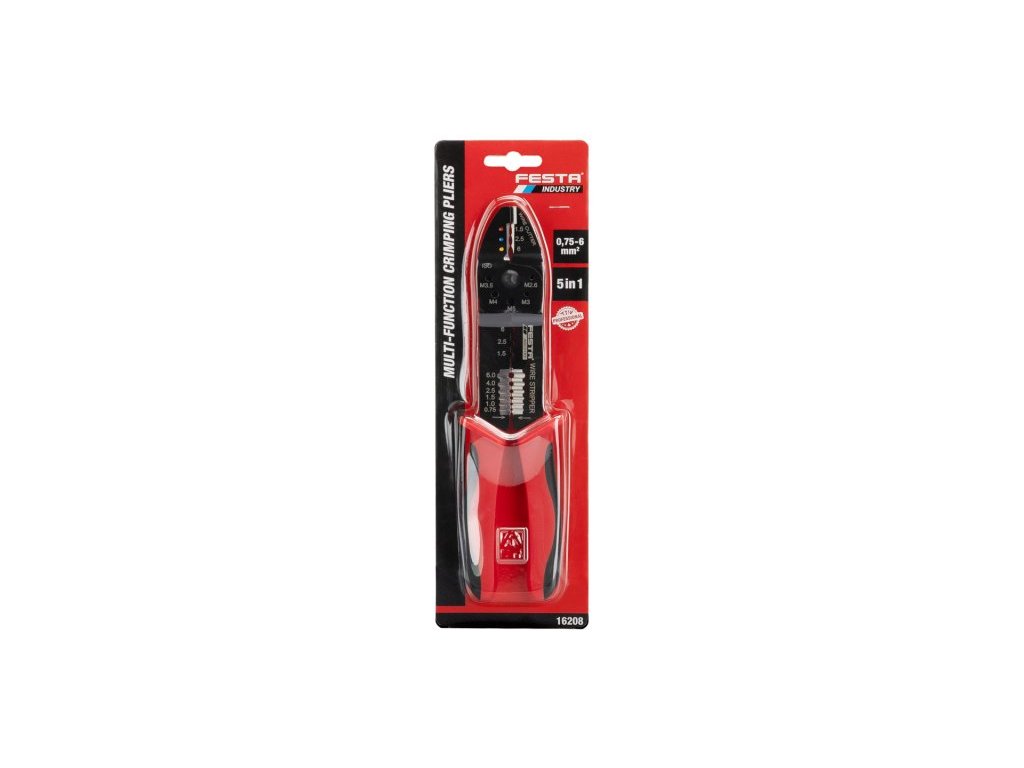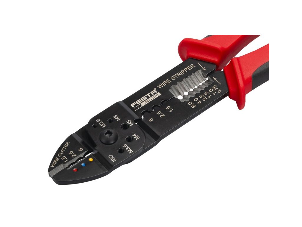 profesionální multifunkční kleště 5 v 1 se speciálními čelistmi pro střih, střih metrických šroubů, odizolovávání, lisování/krimpování izolovaných a neizolovaných koncovek