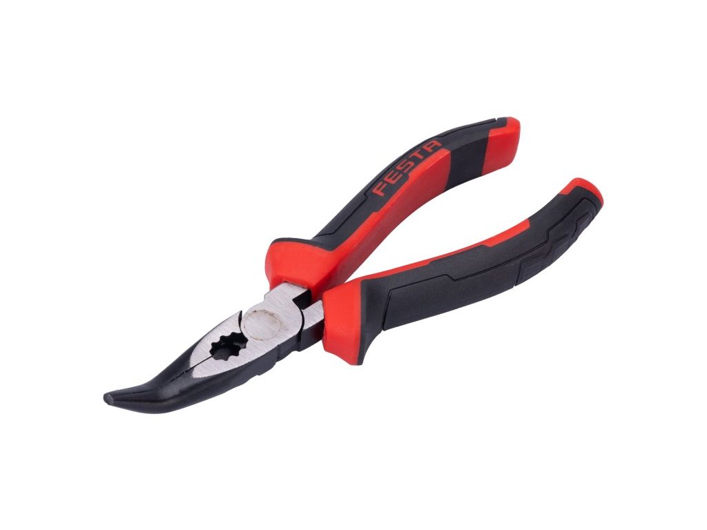 kvalitní radiové zahnuté kleště FESTA uhlíková ocel, čelisti indukčně kalené tvrdost 50 - 55 HRC s antikorozní úpravou ergonomické dvoukomponentní měkčené rukojeti, při úchopu a stisku o 30% více kontaktu s rukojetí - redukuje množství potřebné síly tenké a zahnuté čelisti pro hůře přístupná místa výrobce je držitelem certifikátu ISO 90001