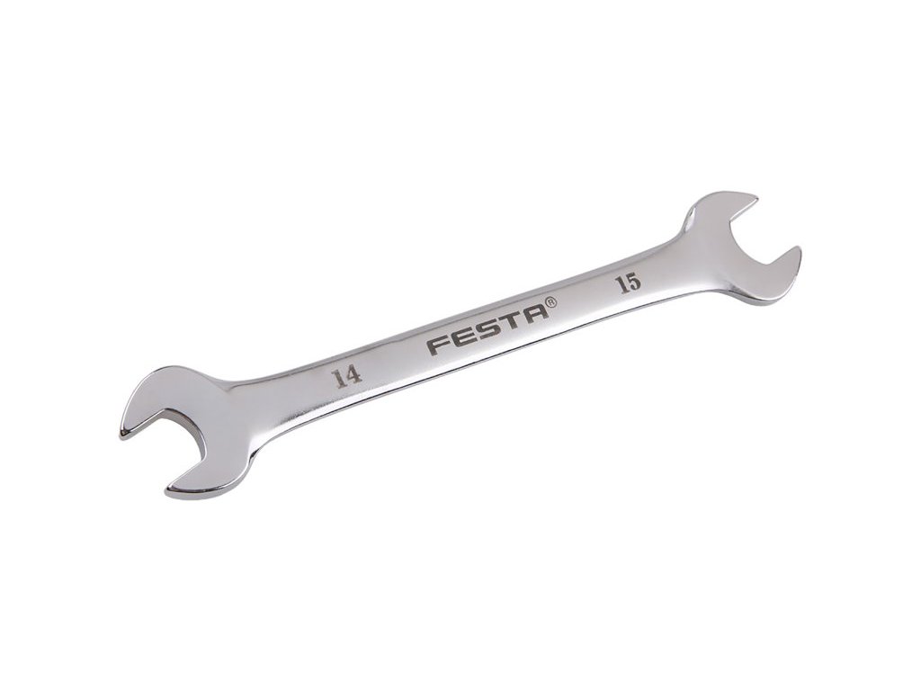 Klíč otevřený FESTA je kovaný z jednoho kusu chromvanadiové oceli dle normy DIN3110, ošetřené dvěma vrstvami niklu a jednou vrstvou chromu. Vhodný do autodílen a do praktického denního nářadí.