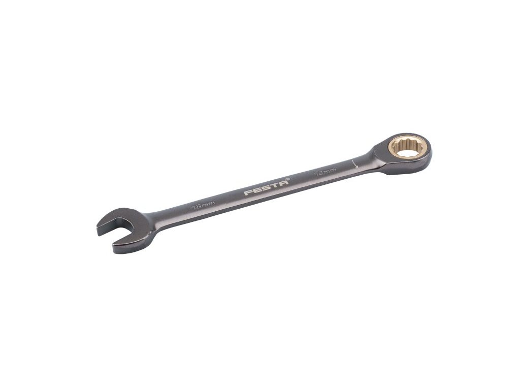 ráčnové klíče FESTA jsou vyrobeny kováním z kvalitní chromvanadiové oceli ocel povrchově upravená matným tvrdochromem pro dosažení optimální povrchové tvrdosti a odolnosti vůči korozivním vlivům rohatku ráčny klíče tvoří 72 kalených zubů, záběr po 5-ti obloukových stupních kvalita, tvrdost a přesnost klíčů odpovídá normě DIN/ISO