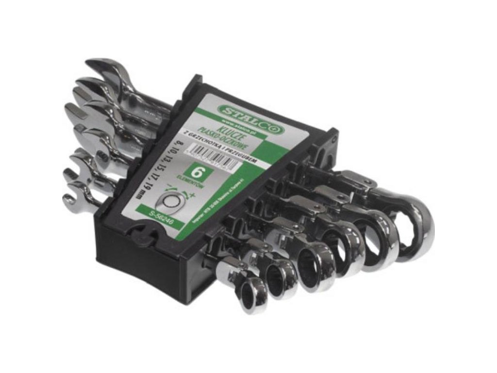 Klíč ráčnový kloubový, 8 - 19 mm, 6-dílná sada STALCO