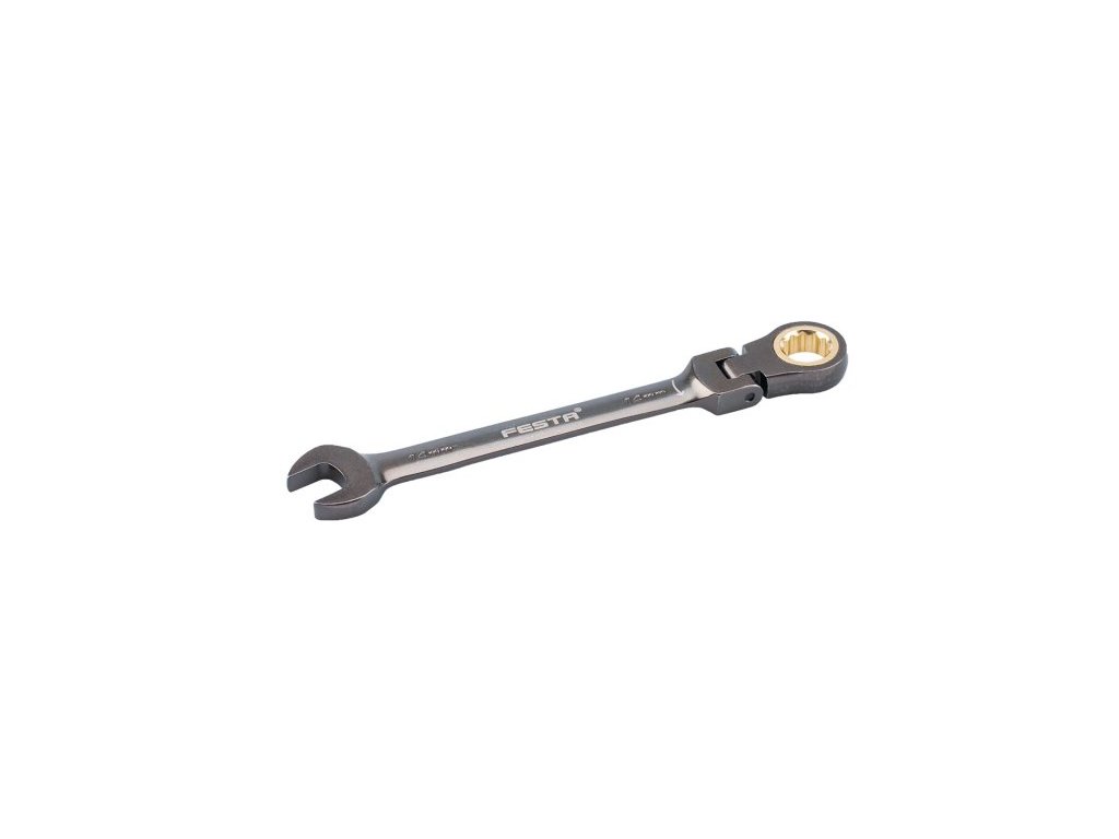 Ráčnové klíče FESTA s kloubem pro použití pod úhlem s výhodou rohatky (ráčny) jsou vyrobeny kováním z kvalitní chromvanadiové oceli. Tato ocel povrchově upravená matným tvrdochromem pro dosažení optimální povrchové tvrdosti a odolnosti vůči korozivním vlivům. Rohatku ráčny klíče tvoří 72 kalených zubů, záběr po 5-ti obloukových stupních. Kvalitou, tvrdostí a přesností přesně odpovídají normě DIN/ISO.