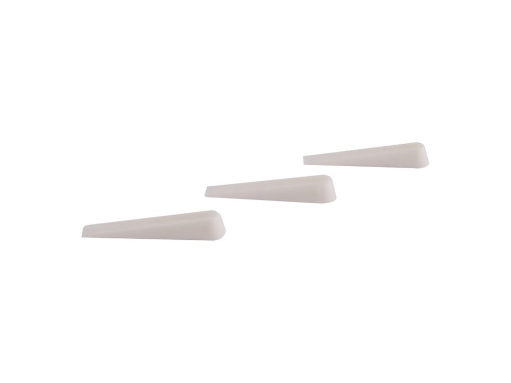 Plastové klínky 0-4 mm, množství : 100 ks, použití : k zajištění stejné šířky a linie spár při obkládání a dláždění balení : blistr s eurootvorem.