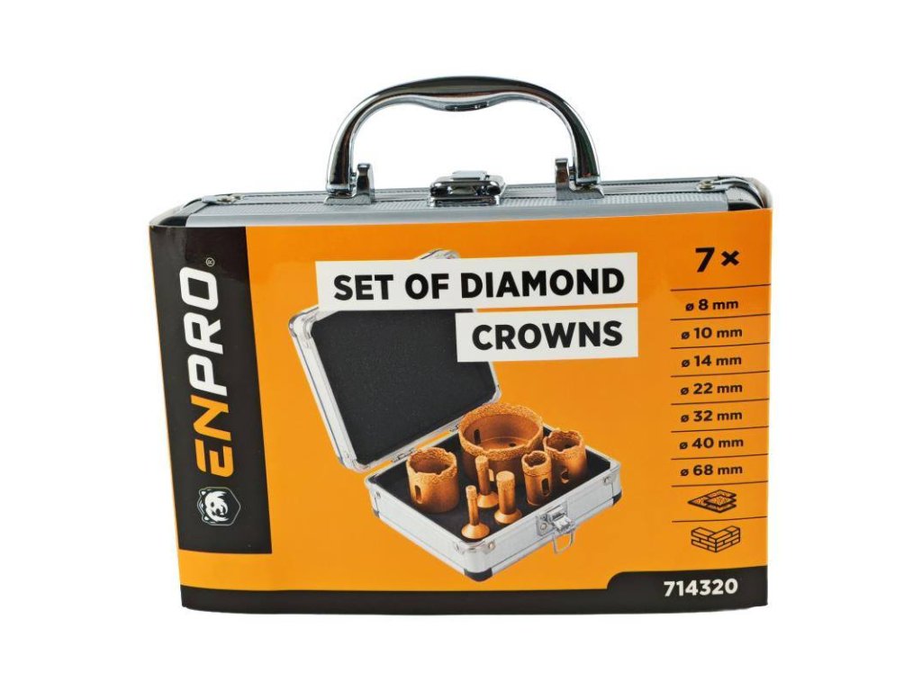 - sada profesionálních vykružovacích diamantových korunek ENPRO se závitem M14 - pro úhlové brusky v praktickém a odolném hliníkovém kufru