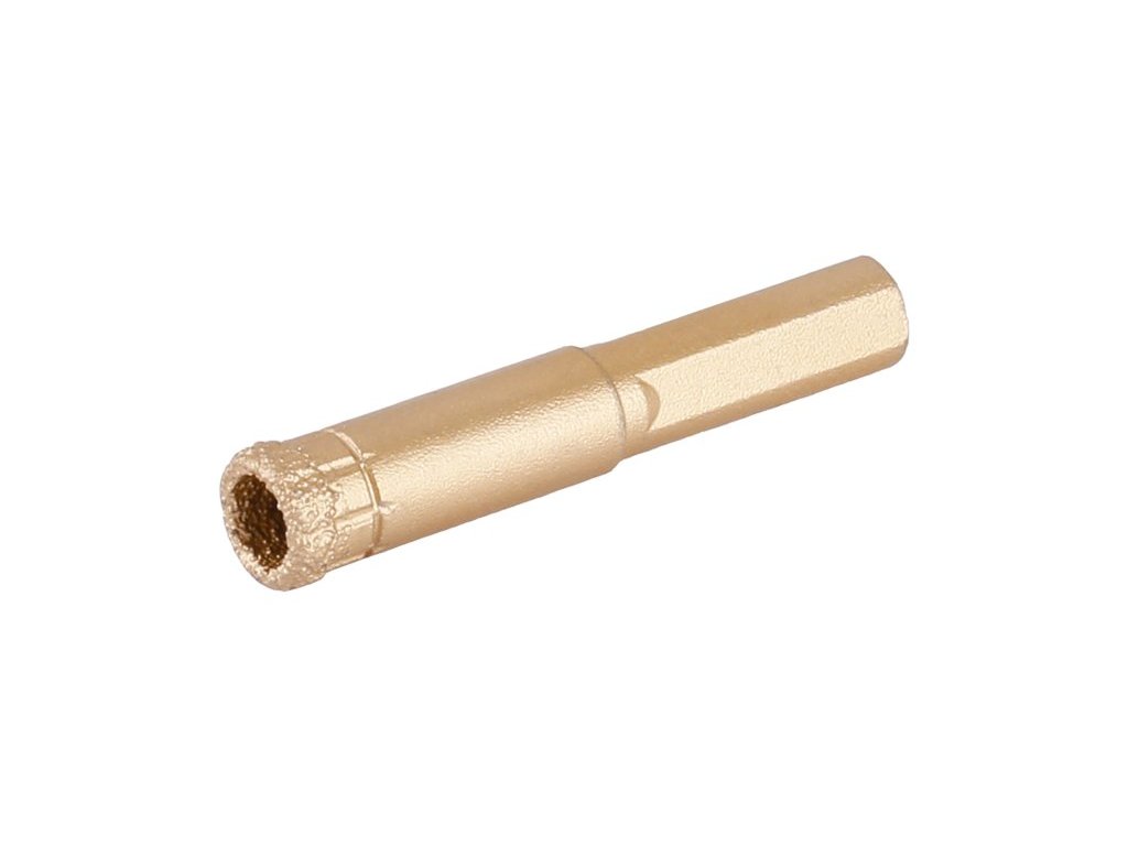 profesionální vrtací diamantová korunka se stopkou pro přesné a rychlé vrtání do kamene, dlažby, obkladů, žuly, mramoru a jiných extrémně tvrdých materiálů nejen ve stavebnictví výška vrstvy diamantu 10 mm, dlouhá životnost kotunku lze použít bez nutnosti použítí jakéhokoliv pomocného nástroje, u hladkých povrchů, doporučujeme požít vodič pro vrtáky a korunky 20379 doporučený pracovní postup - korunku upněte do vrtačky nebo AKU vrtačky doporučení - vrtačka by měla mít dostatečný výkon a vysoké otáčky, vrtat požadovaný otvor začněte pod úhlem 45 °, korunka a rychlost otáček vrtačky okamžitě zajistí uchycení v požadovaném místě, pomalu při rovnoměrně vytvořeném tlaku narovnejte směr vrtání do svislé polohy při vrtání doporučujeme korunky, zejména u tvrdých dlažeb chladit