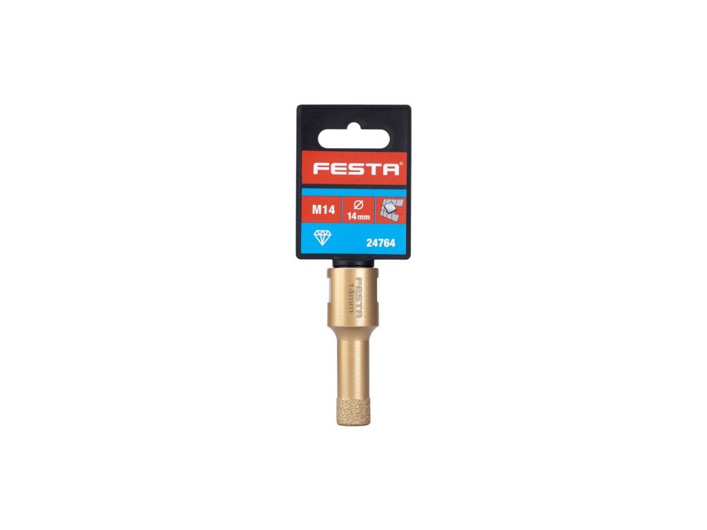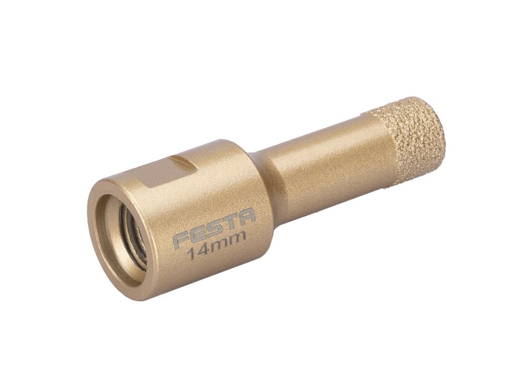 profesionální vykružovací diamantová korunka se závitem M14 - pro úhlové brusky pro "suché" přesné a rychlé vrtání do kamene, dlažby, obkladů, žuly, mramoru a jiných extrémně tvrdých materiálů nejen ve stavebnictví výška vrstvy diamantu 10 mm, dlouhá životnost bez nutnosti použít jakýkoli pomocný nástroj vykroužíte přesný otvor na požadovaném místě doporučený pracovní postup - našroubujte korunku přímo na závit hlavy úhlové brusky, pevně dotáhněte, vykružovat požadovaný otvor začněte pod úhlem 45 °, korunka a rychlost brusky okamžitě zajistí uchycení v požadovaném místě, pomalu při rovnoměrně vytvořeném tlaku narovnejte směr vykružování do svislé polohy, menší průměry 6 - 14 cm je u vrtání do tvrdých dlažeb, mezi jednotlivými vrty, ZCHLADIT - stačí ponořit do sklenice s vodou nebo nechat v otáčkách ochladit vzduchem! Instruktážní video