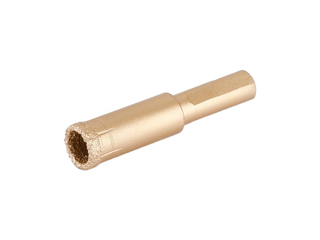 profesionální vrtací diamantová korunka se stopkou pro přesné a rychlé vrtání do kamene, dlažby, obkladů, žuly, mramoru a jiných extrémně tvrdých materiálů nejen ve stavebnictví výška vrstvy diamantu 10 mm, dlouhá životnost kotunku lze použít bez nutnosti použítí jakéhokoliv pomocného nástroje, u hladkých povrchů, doporučujeme požít vodič pro vrtáky a korunky 20379 doporučený pracovní postup - korunku upněte do vrtačky nebo AKU vrtačky doporučení - vrtačka by měla mít dostatečný výkon a vysoké otáčky, vrtat požadovaný otvor začněte pod úhlem 45 °, korunka a rychlost otáček vrtačky okamžitě zajistí uchycení v požadovaném místě, pomalu při rovnoměrně vytvořeném tlaku narovnejte směr vrtání do svislé polohy