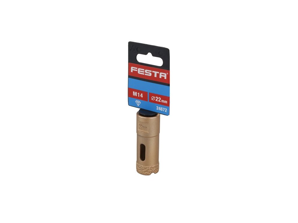 profesionální vykružovací diamantová korunka se závitem M14 - pro úhlové brusky pro "suché" přesné a rychlé vrtání do kamene, dlažby, obkladů, žuly, mramoru a jiných extrémně tvrdých materiálů nejen ve stavebnictví výška vrstvy diamantu 10 mm, dlouhá životnost bez nutnosti použít jakýkoli pomocný nástroj vykroužíte přesný otvor na požadovaném místě doporučený pracovní postup - našroubujte korunku přímo na závit hlavy úhlové brusky, pevně dotáhněte, vykružovat požadovaný otvor začněte pod úhlem 45 °, korunka a rychlost brusky okamžitě zajistí uchycení v požadovaném místě, pomalu při rovnoměrně vytvořeném tlaku narovnejte směr vykružování do svislé polohy, menší průměry 6 - 14 mm je u vrtání do tvrdých dlažeb. Mezi jednotlivými vrty ZCHLADIT - stačí ponořit do sklenice s vodou nebo nechat v otáčkách ochladit vzduchem! Instruktážní video