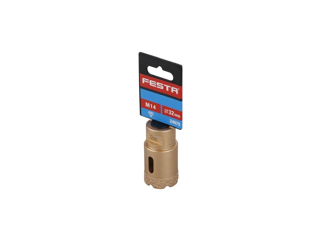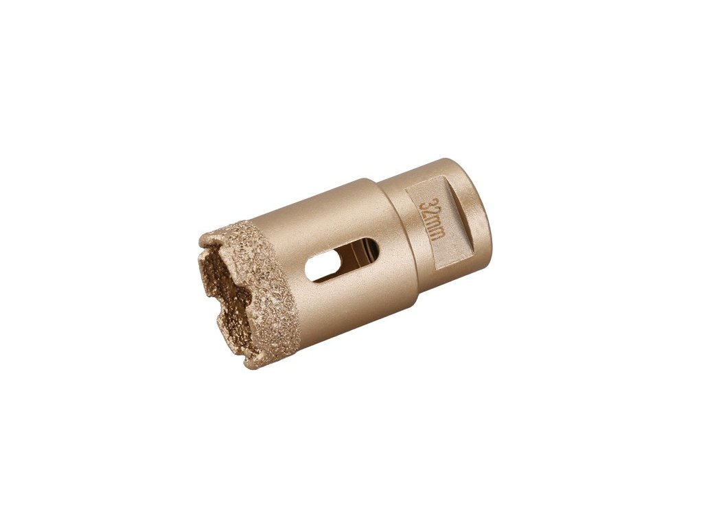 profesionální vykružovací diamantová korunka se závitem M14 - pro úhlové brusky pro "suché" přesné a rychlé vrtání do kamene, dlažby, obkladů, žuly, mramoru a jiných extrémně tvrdých materiálů nejen ve stavebnictví výška vrstvy diamantu 10 mm, dlouhá životnost bez nutnosti použít jakýkoli pomocný nástroj vykroužíte přesný otvor na požadovaném místě doporučený pracovní postup - našroubujte korunku přímo na závit hlavy úhlové brusky, pevně dotáhněte. Vykružovat požadovaný otvor začněte pod úhlem 45°, korunka a rychlost brusky okamžitě zajistí uchycení v požadovaném místě, pomalu při rovnoměrně vytvořeném tlaku narovnejte směr vykružování do svislé polohy. Menší průměry 6 - 14 mm jsou u vrtání do tvrdých dlažeb. Mezi jednotlivými vrty ZCHLADIT - stačí ponořit do sklenice s vodou nebo nechat v otáčkách ochladit vzduchem! Instruktážní video